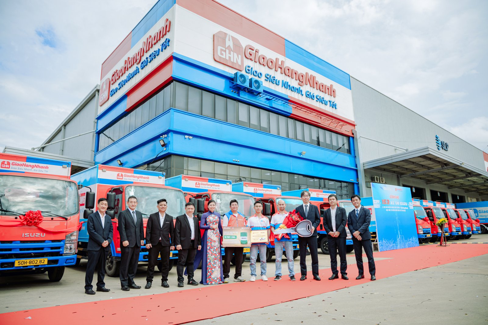 Nghi thức trao chìa khóa và bàn giao 153 xe tải ISUZU đã diễn ra trang trọng, mở ra bước tiến mới trong hành trình hợp tác. Đây cũng là minh chứng cho sự tin tưởng của GHN đối với uy tín và chất lượng mà ISUZU luôn duy trì.